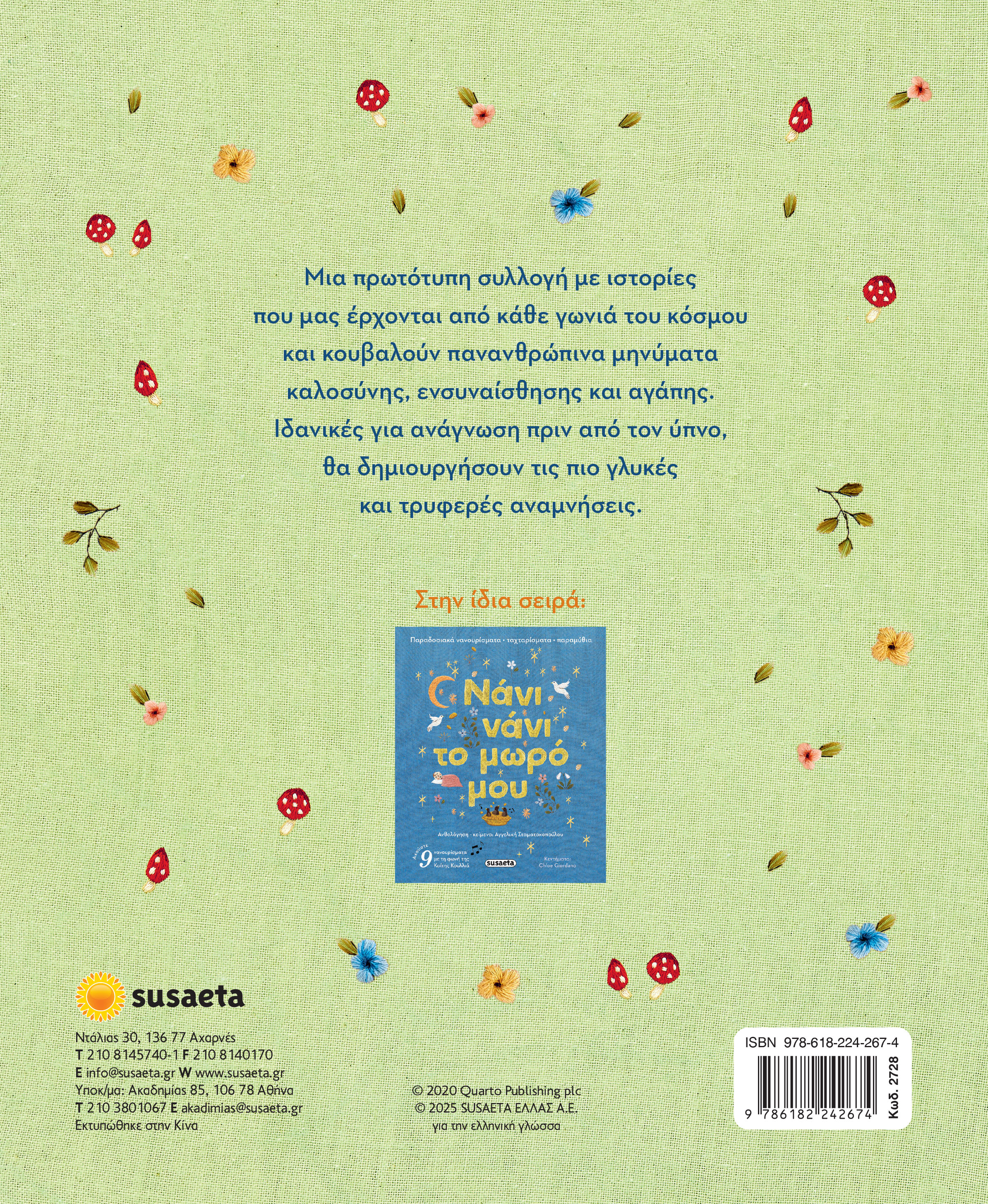 Μια πρωτότυπη συλλογή με ιστορίες που μας έρχονται από κάθε γωνιά του κόσμου και κουβαλούν πανανθρώπινα μηνύματα καλοσύνης, ενσυναίσθησης και αγάπης. Ιδανικές για ανάγνωση πριν από τον ύπνο, θα δημιουργήσουν τις πιο γλυκές και τρυφερές αναμνήσεις.