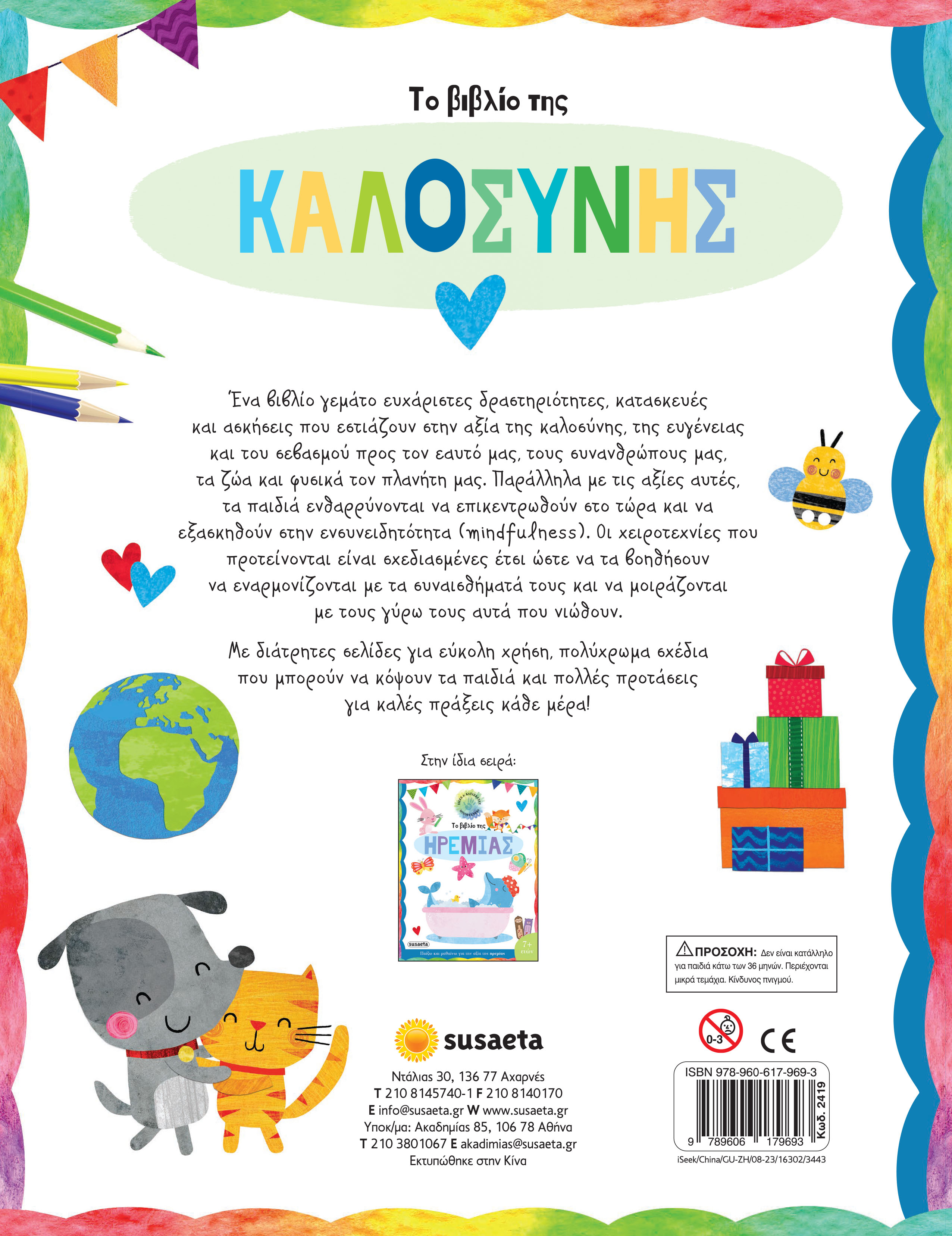 Ένα βιβλίο γεμάτο ευχάριστες δραστηριότητες, κατασκευές και ασκήσεις που εστιάζουν στην αξία της καλοσύνης, της ευγένειας και του σεβασμού προς τον εαυτό μας, τους συνανθρώπους μας, τα ζώα και φυσικά τον πλανήτη μας.