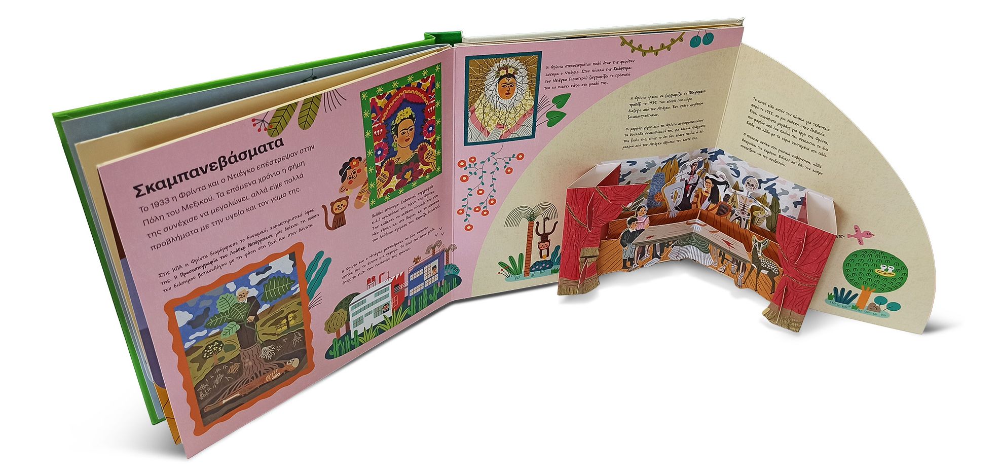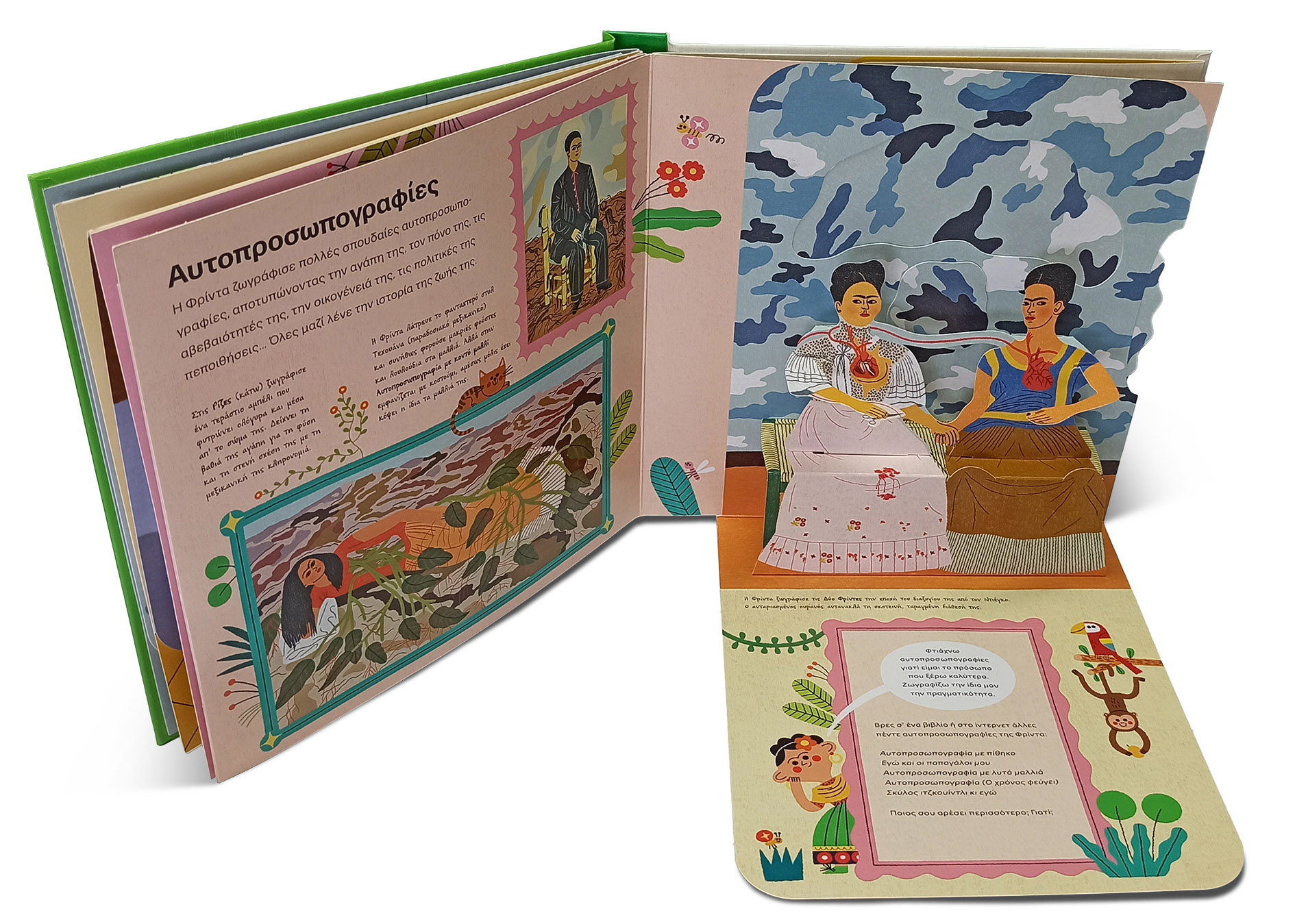 Ανακάλυψε τον πολύχρωμο κόσμο της Φρίντας Κάλο! Μάθε για τη ζωή της, την οικογένειά της, τα κατοικίδιά της και το έργο της και γνώρισε τους πιο διάσημους πίνακές της σε εντυπωσιακές τρισδιάστατες εικόνες!